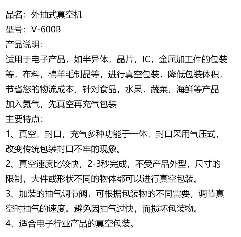 氣動外抽真空包裝機BG-600